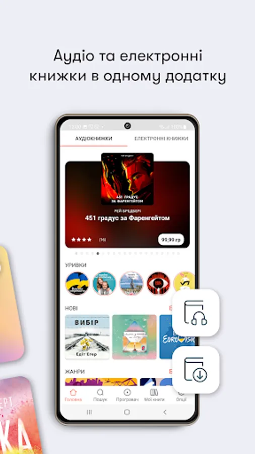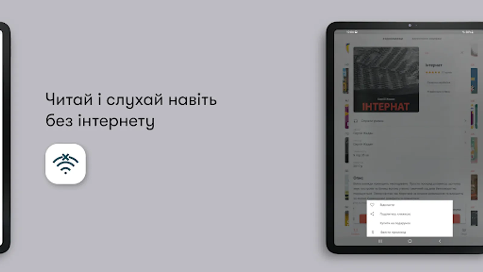 Abuk is a Ukrainian application that collects a unique assortment of audiobooks and popular e-books. In our updated version, we added a reader, so you can not only listen, but also read fiction, poetry, non-fiction, detective stories, literature from the school curriculum, textbooks, children's works by Ukrainian and foreign authors.