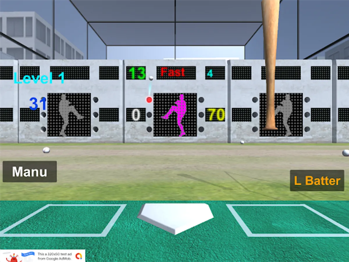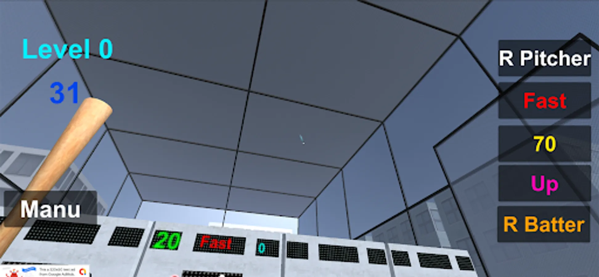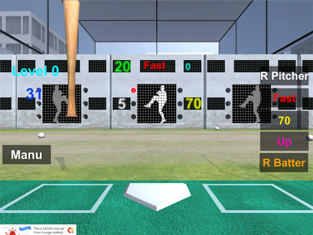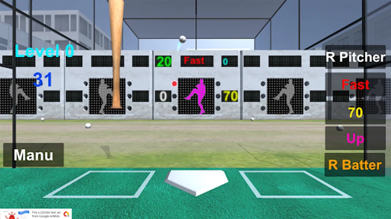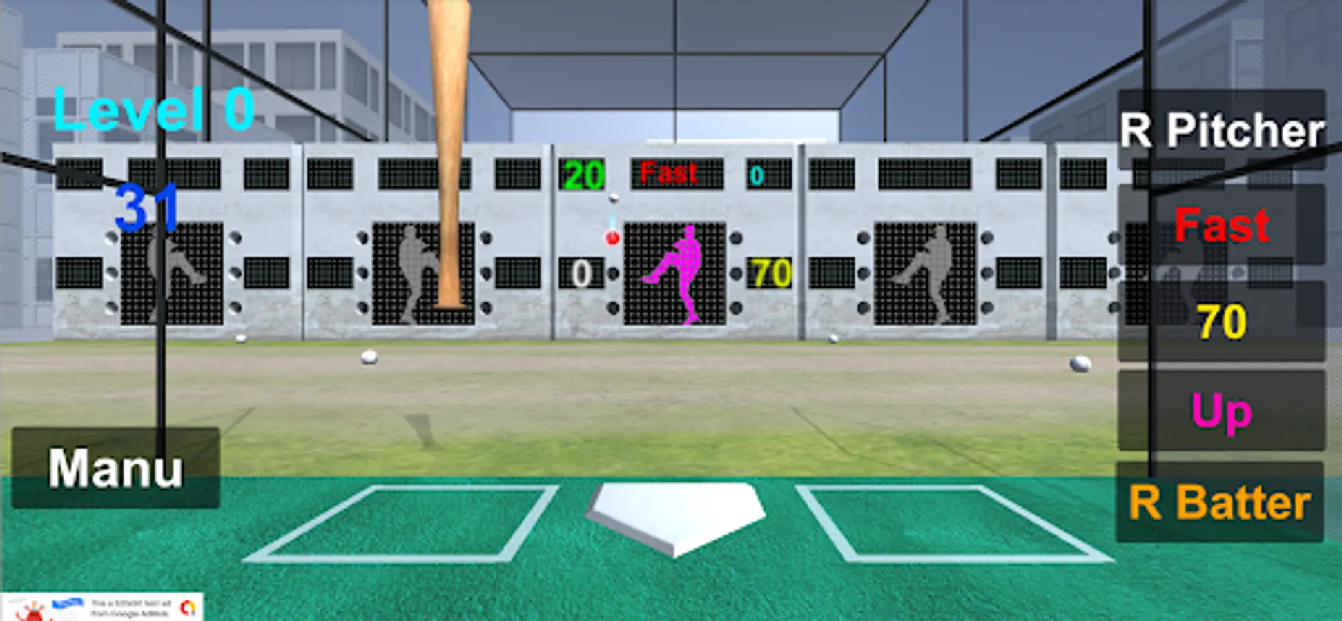 1.Level 1 for practice. Change Pitchers or Ball Type or Speed by click on them.