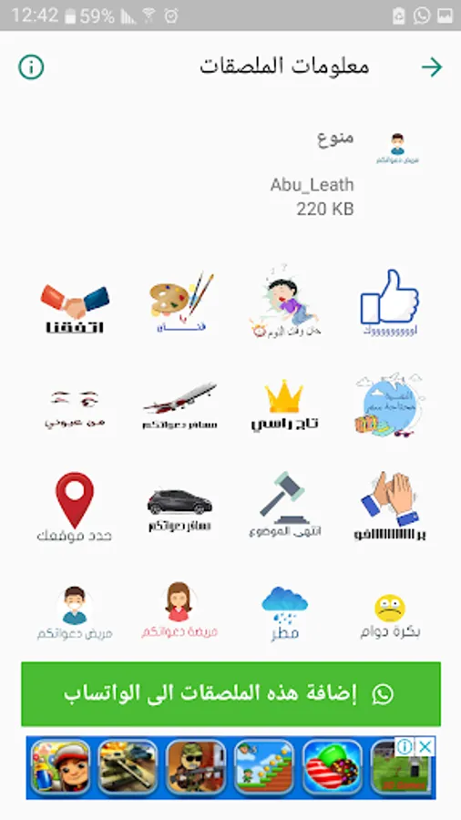 As for the way to use it, it is very simple, all you have to do is download it and install it on your phone, then log in to it, and if you like one of the groups of stickers that have been added, including (morning congratulations - evening congratulations - love - religious - Quranic verses - various congratulations - Sports - and other groups) You will find a button at the bottom that says “Add these stickers to WhatsApp” with a green background. Click on it and it will be added directly.