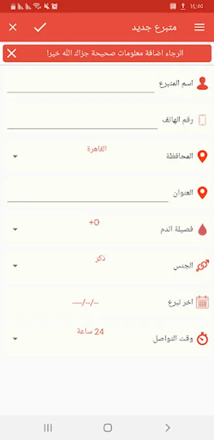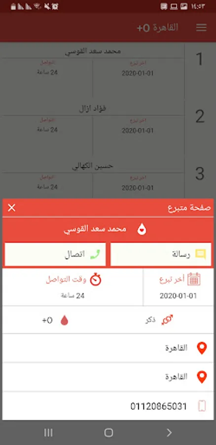 The application is open and available to all residents of the State of Egypt to add their names to the application database to donate blood and when there is a need for their donation, they will be contacted by the means that was previously specified by them (call - text message).