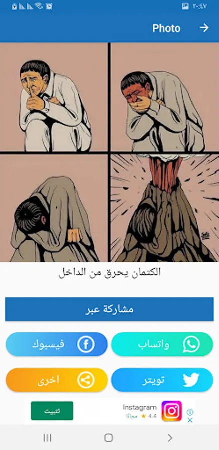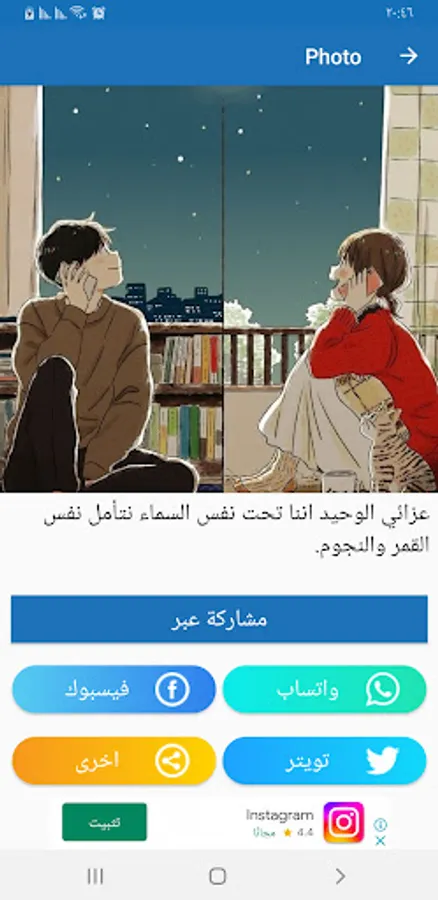 An image and text application that displays the most wonderful images with the most beautiful phrases that suit them, you can share the image with the text directly and easily to become WhatsApp cases images, Facebook publications or Twitter tweets.