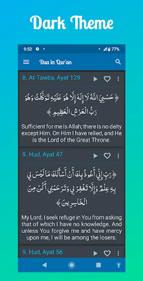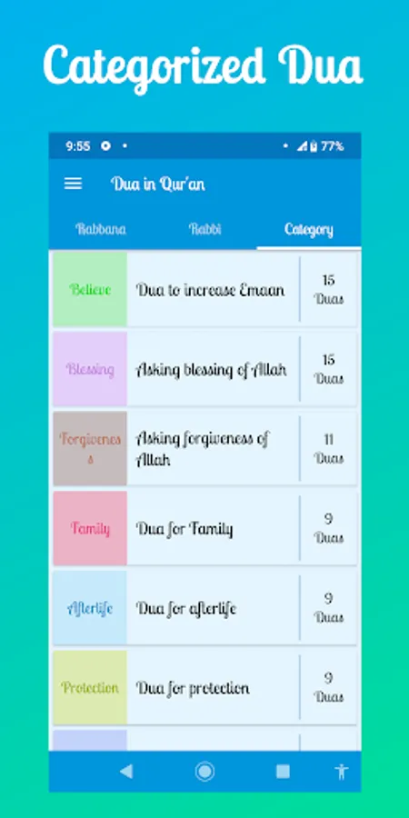 √ Dua In Quran (Quranic supplication) is a collection of 40 Rabbanas & 49 Rabbi Dus from The holy Quran.