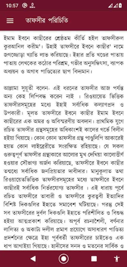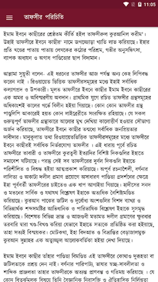 Allama Suyuti said- No one else has recorded such commentary till date. This is the most beneficial and beneficial of the narrations based on narration. Ibn Katheer is an immortal and unforgettable contribution of Imam Ibn Katheer in Tafsir. Most of the commentary books written in the early period have disappeared in the womb of time. Some commentary books may have been preserved in manuscripts in a library. Of all the important tafsirs that have been fortunate enough to be blackened by the light of day, Ibn Katheer is the most popular. Ibn Katheer is the most reliable tafsir in the Tafsir among the Manukulat or tradition based tafsirs.
