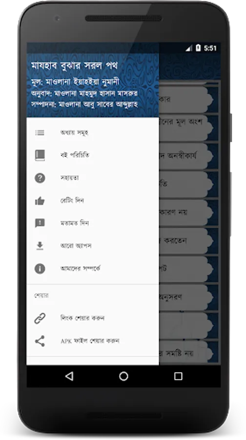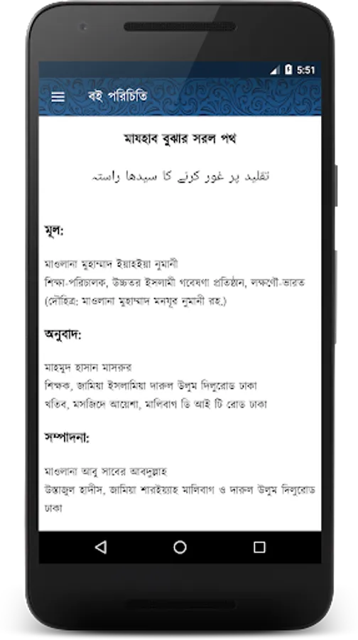 মূল কিতাব হলো ভারতের প্রখ্যাত আলেম হযরত মাওলানা মুহাম্মদ মনযূর নুমানী রহ.-এর দৌহিত্র মাওলানা মুহাম্মাদ ইয়াহইয়া নুমানীর একটি ওজস্বী কিতাব ‘তাকলীদ আওর মাযহাবী এখতেলাফ কী হাকীকত’(মাযহাব ও ইমামগণের ইখতিলাফের মূল রহস্য)-এর সারসংক্ষেপ। মাওলানা নিজেই নিজের এই কিতাবের সারসংক্ষেপ প্রস্তুত করেছেন এবং নাম দিয়েছেন ‘তাকলীদ পর গওর কারনে কা সীধা রা-স্তাহ’(মাযহাব বুঝার সরল পথ)। উভয় কিতাব সকলের সংগ্রহে রাখার মতো। প্রথমোক্ত কিতাবে চারটি মৌলিক বিষয় দালিলিকভাবে উপস্থাপন করা হয়েছে,