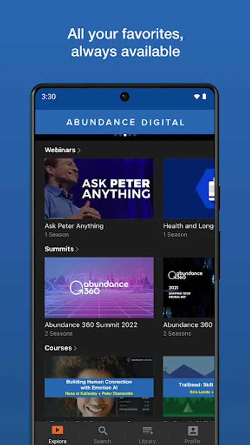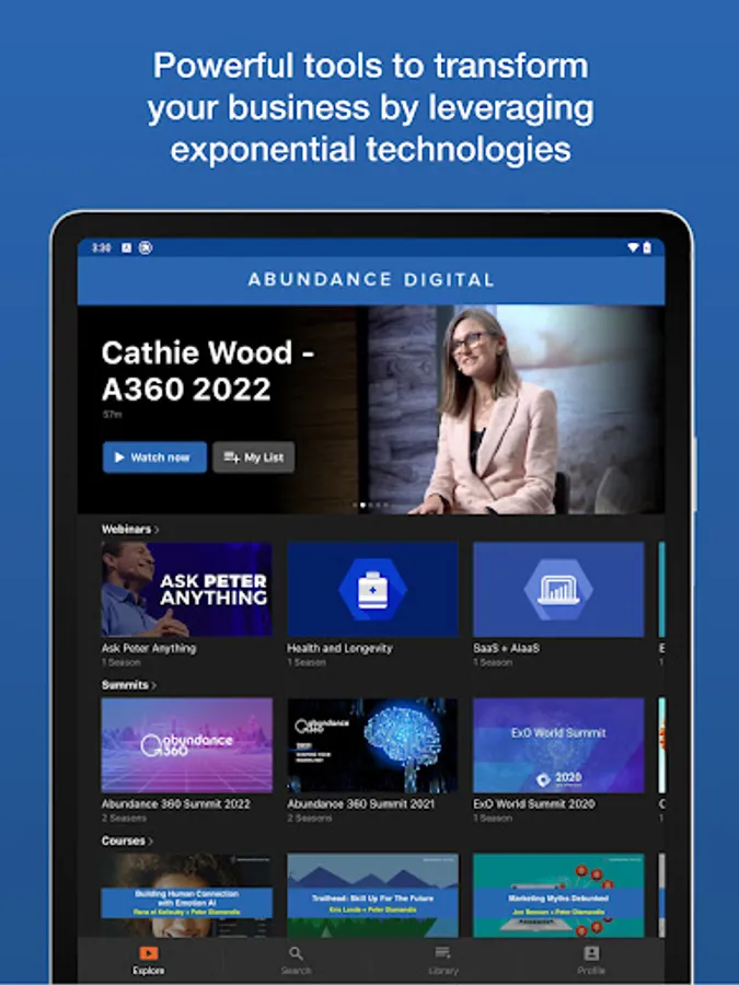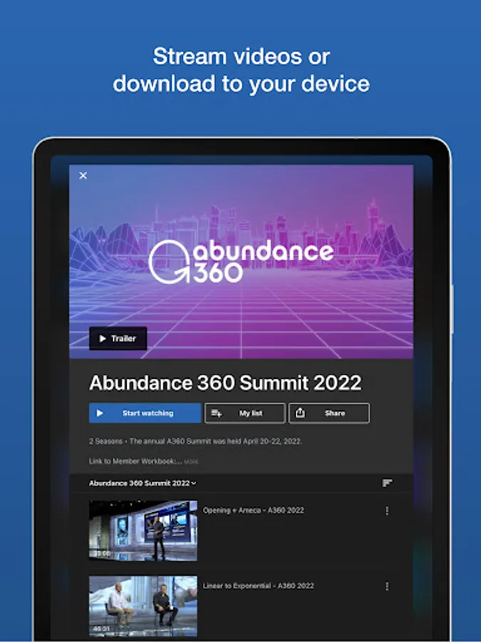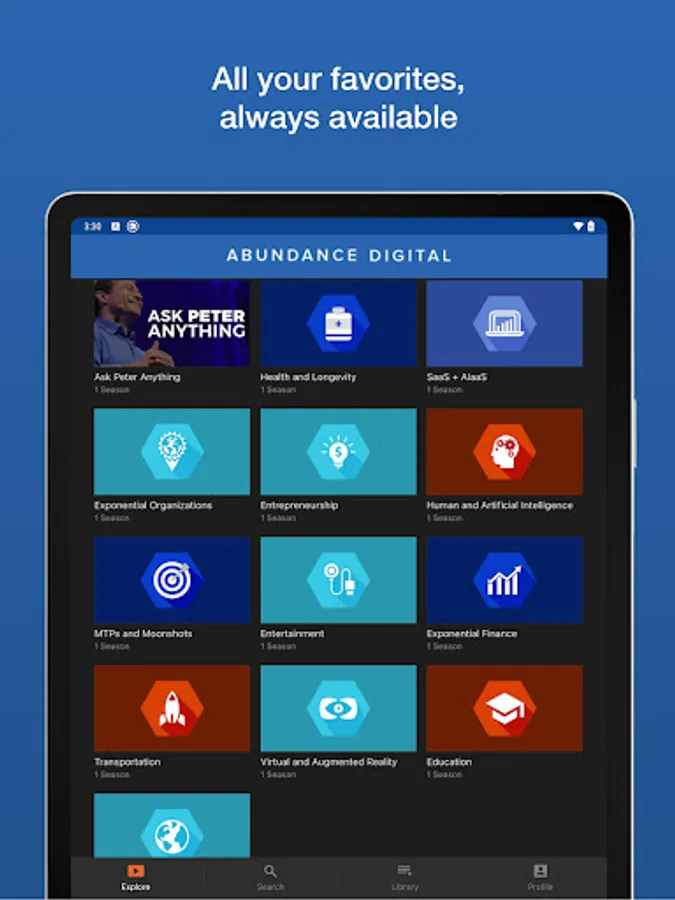 Abundance Digital is Singularity University’s Premier Digital Membership, run by Peter Diamandis and his team. This app contains all the video content and courses included with your membership. The growing video library includes: