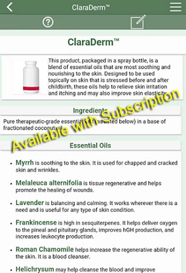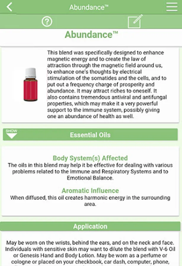 *Abundant Health™ is a true third-party company that does not profit from the sales of essential oils and is not sponsored by, affiliated with, or endorsed by any essential oil company. We offer this material as a third-party, unbiased presentation about oils and products sold by one of the leading essential oil suppliers and producers in the world. Product names throughout this app are trademarks or registered trademarks of Young Living® Essential Oils. Abundant Health™ is not sponsored by, affiliated with, or endorsed by Young Living® Essential Oils.