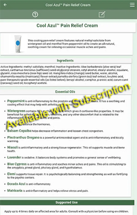 This app combines information from the authoritative Reference Guide for Essential Oils (by Connie and Alan Higley) with convenient search, easy navigation, and personal note-taking features. Use the app anytime, anywhere to quickly find and confidently use recommended single oils and blends for hundreds of health conditions and wellness solutions.