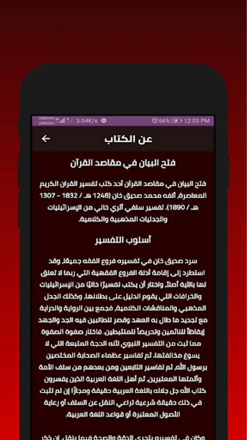 And you can read the entire interpretation of the book Fath Al-Bayan on the purposes of the Qur’an through the sections in the application