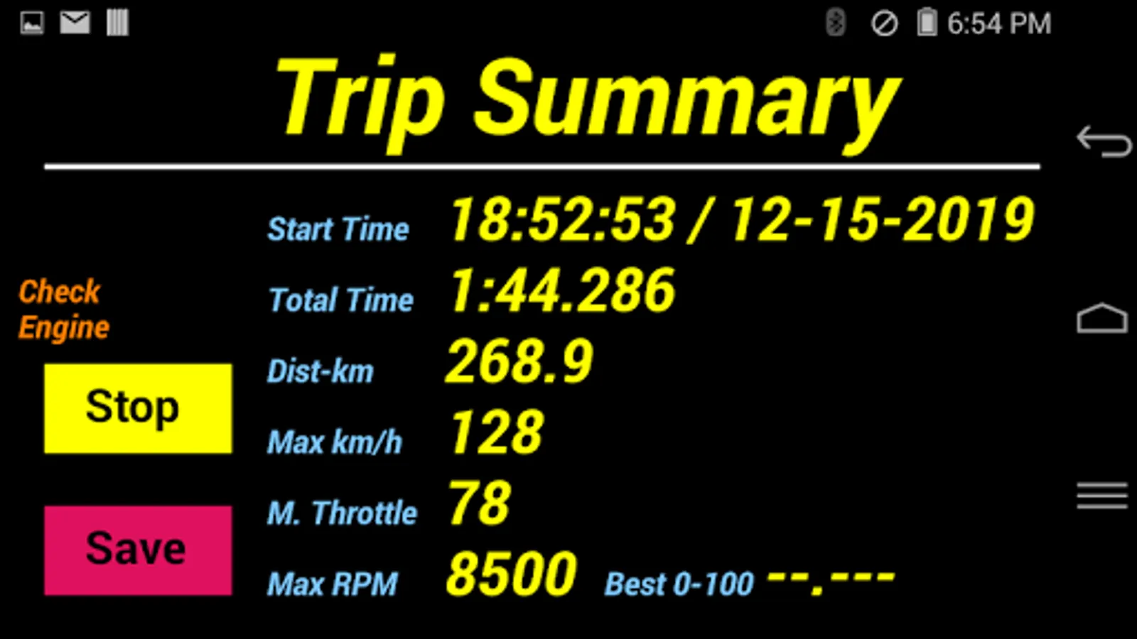 11. The trip summary mode comes with time keeping - you can use it to record lap time by touch SAVE button. You can stop the timing as concluding the trip and SAVE it as well. The best 0-60mph run will be also records here if it's available.