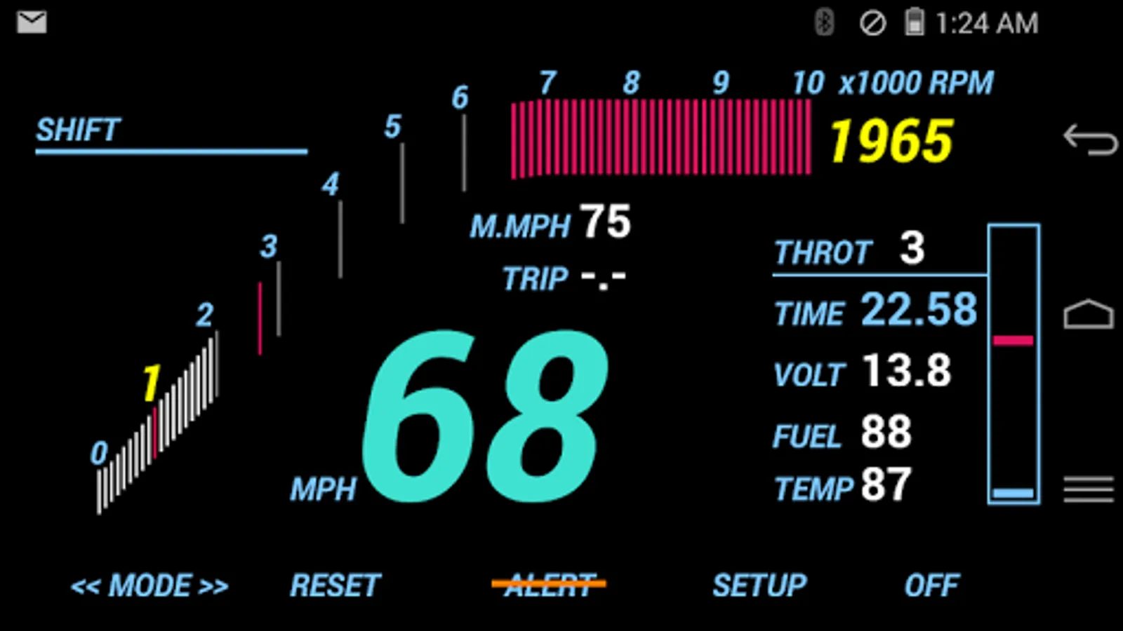 - ADD-LITE starts at the NORMAL mode which shows all the useful and real-time information of your car's RPM, speed, max RPM, max speed, coolant temperature, voltage, fuel tank, throttle, and trip (if your car's ECU supports).
