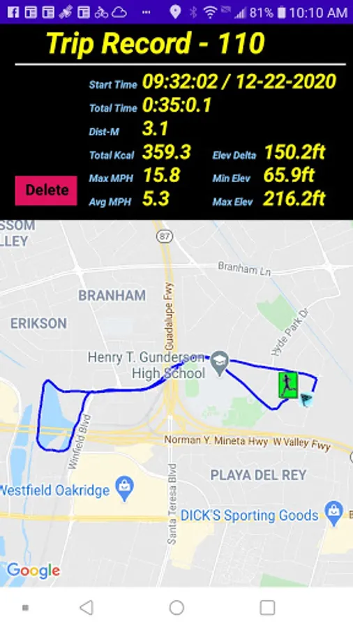 On top of the average speed, time, distance, calories...basic data, your saved exercise activities also record enhanced data such as the route map, maximum speed achieved, min/max elevation, and the difference of the elevation.