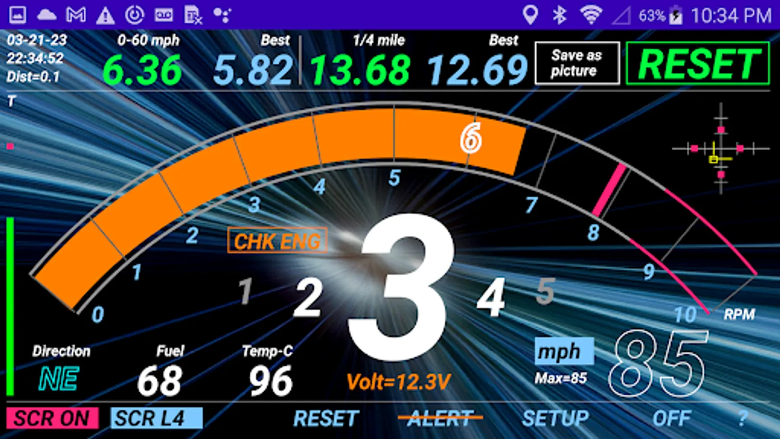 The app is simplified with two modes (OBD and GPS-only) with tons of vehicle telemetry data nicely displayed - including rpm, speed, fuel, coolant temp, adjustable red-line, check engine, low voltage, low fuel warnings, direction, and trip odometer...etc. It also offers much-appreciated features like 0-60mph / 0-1/4 mile tester and G-meter. Get it today and spice up your drive.