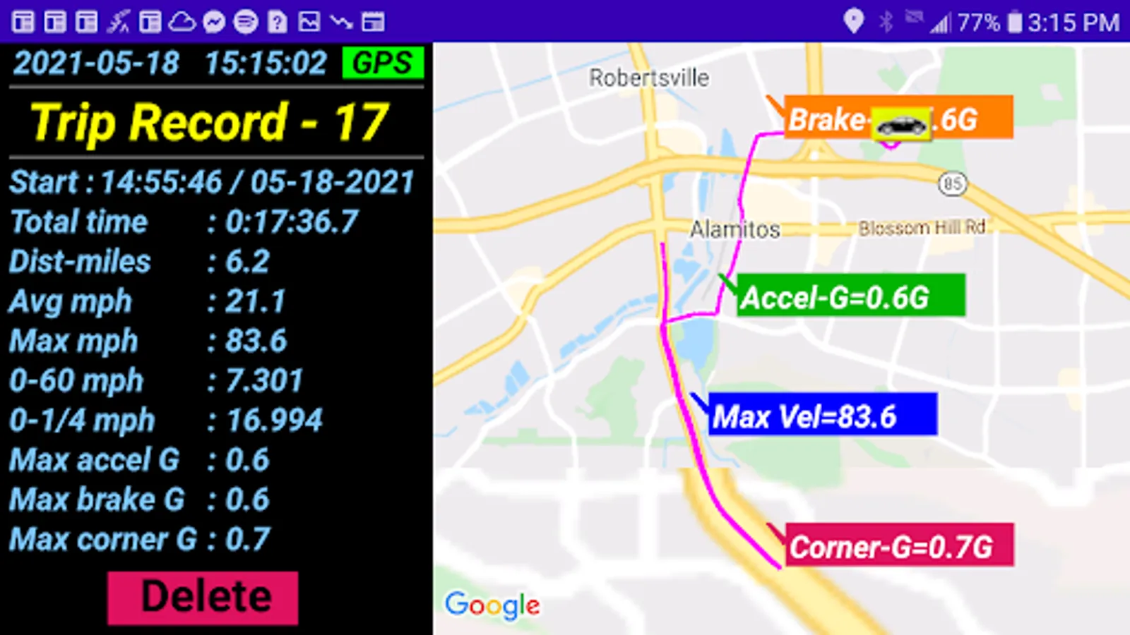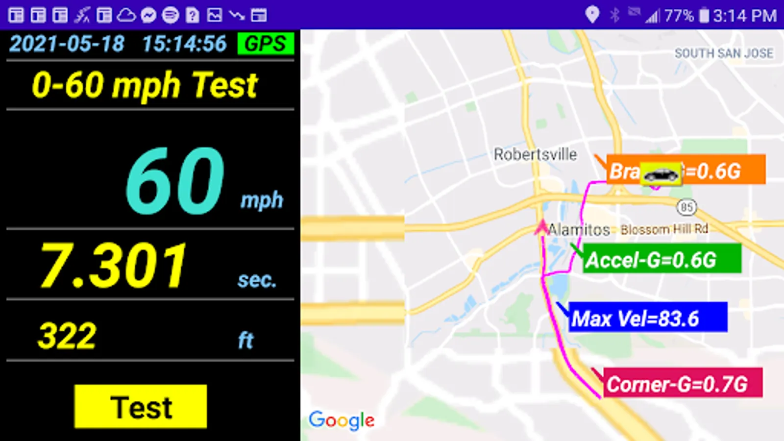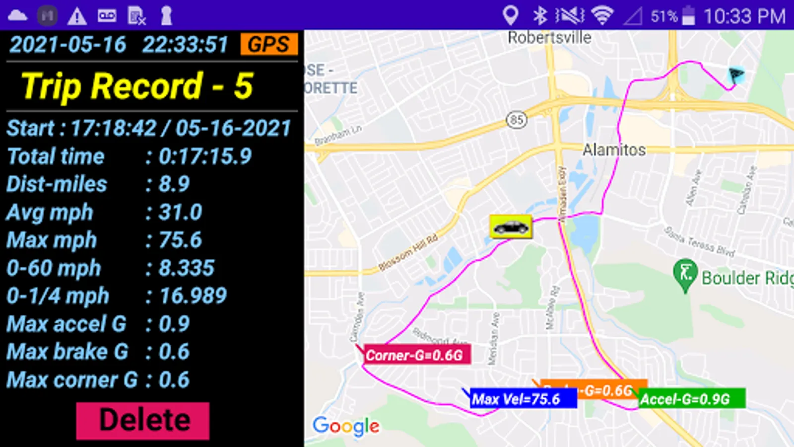 ART also provides handy features for testing 0-60mph and 0-1/4mile performance. You can save all the details of your road trip (or track data!) so you can review it later - includes, max speed, total time, distance, max cornering/accelerating/braking G-force, and your best 0-60 / 0-1/4 test records!!