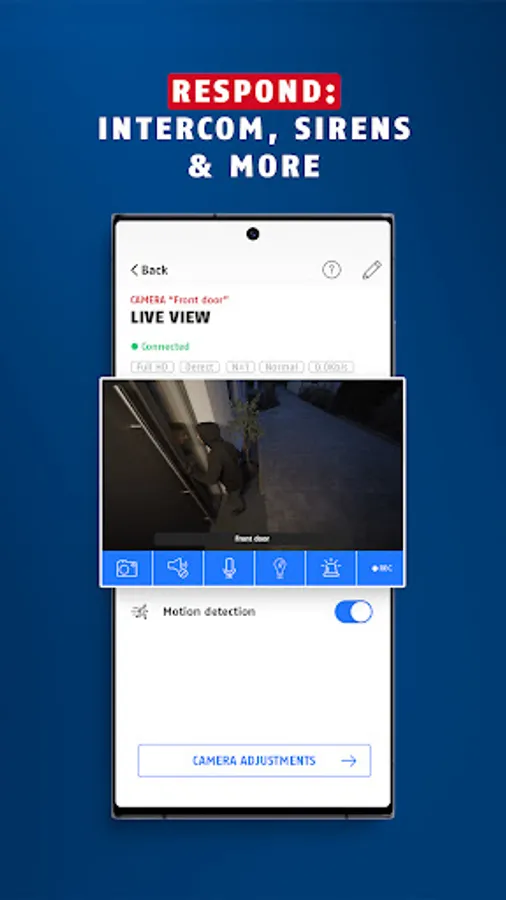 - For cameras with intercom function, you can activate the camera's microphone and loudspeaker in the live view at the touch of a button to talk back via smartphone and quickly clarify situations.