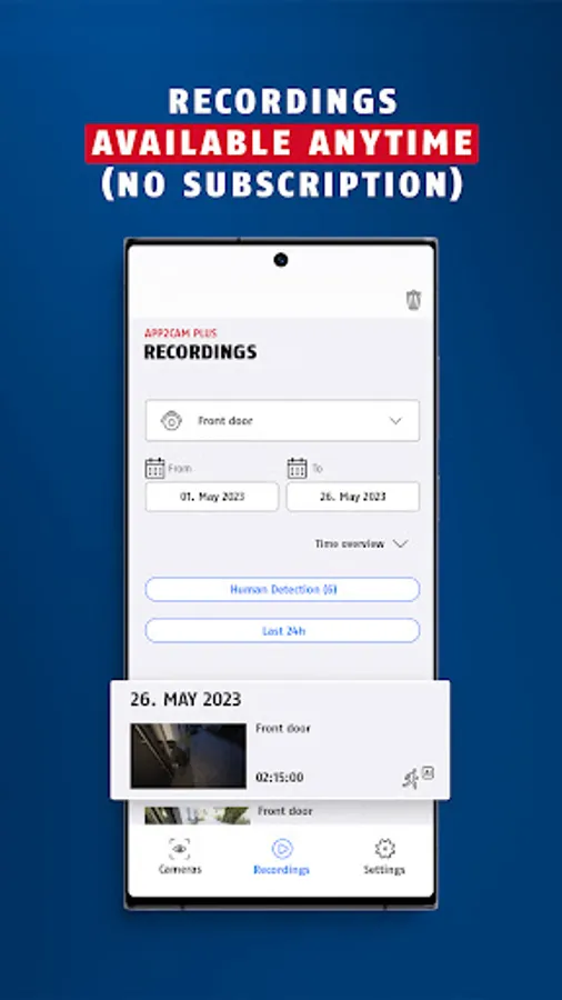 With App2Cam Plus you have permanent access to the live image, the memory and all functions and settings of your security camera.
