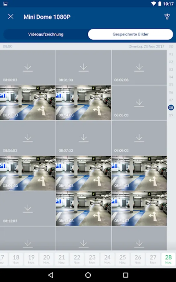 Images can also be saved from the live cast. The relevant image is stored in the image folder on the end device and can be sent easily via MMS or email. If the video files are recorded directly on the camera SD card, the recorded material can be viewed via the app. There is no need to download the entire video; the desired areas can simply be selected and then streamed on the device.