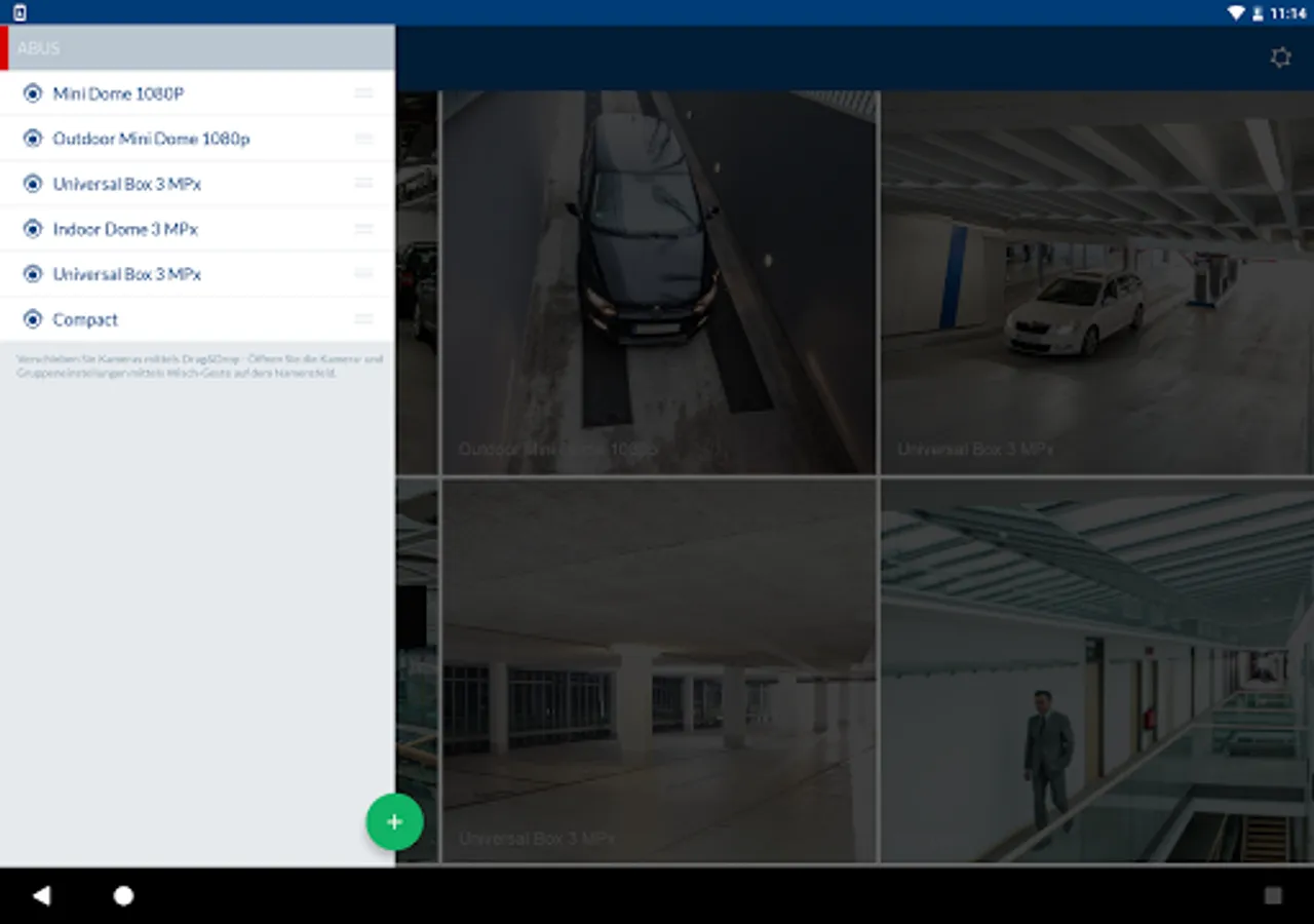 The camera views can be selected individually by creating groups. If multiple cameras are saved in the app, you can switch between them in single or multi-screen simply by swiping. The integrated online help function can display explanations for the control panels, for example. The online update function can be used to update the internal camera database quickly and easily, so that new camera models can be recognised reliably.