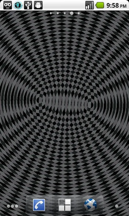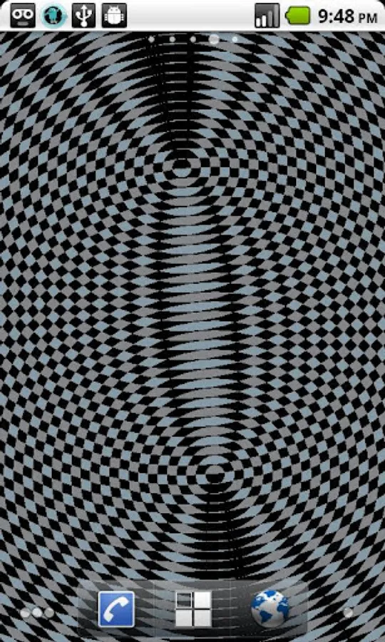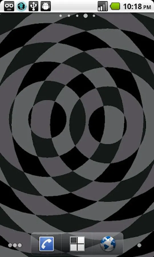 This live wallpaper is based on an effect seen in old 80s and 90s era programs called "demos" that showcased the talent of programming teams in an effort to produce the best looking imagery computed in real-time by highly optimized software. The effect is named for what is generally two sets of circles drawn over the top of each other, with any overlapping areas being colored straight black. This could be accomplished very easily on old hardware by using bitwise operators (the simplest being XOR), but for my implementation I've used OpenGL's depth buffer to achieve a similar effect.