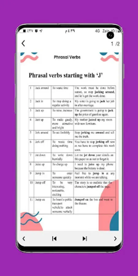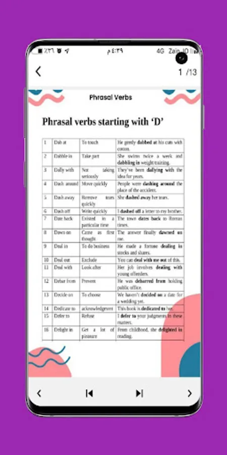 More than a thousand compound verbs in one application arranged according to the alphabet, and you can share the file and move between pages, the application will be continuously updated to be more useful