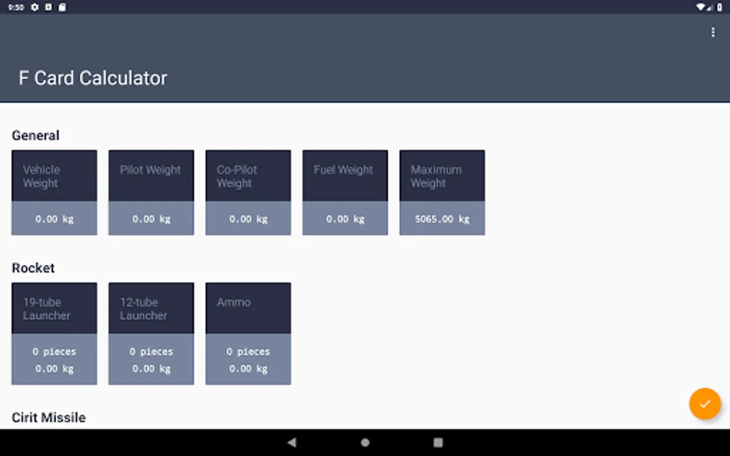 Turkish T129 also known as "Atak" helicopter payload F card calculator application. Designed dark for your eyes and easy to use when flying.