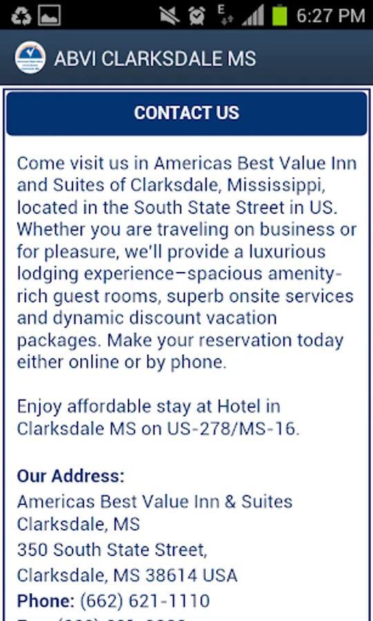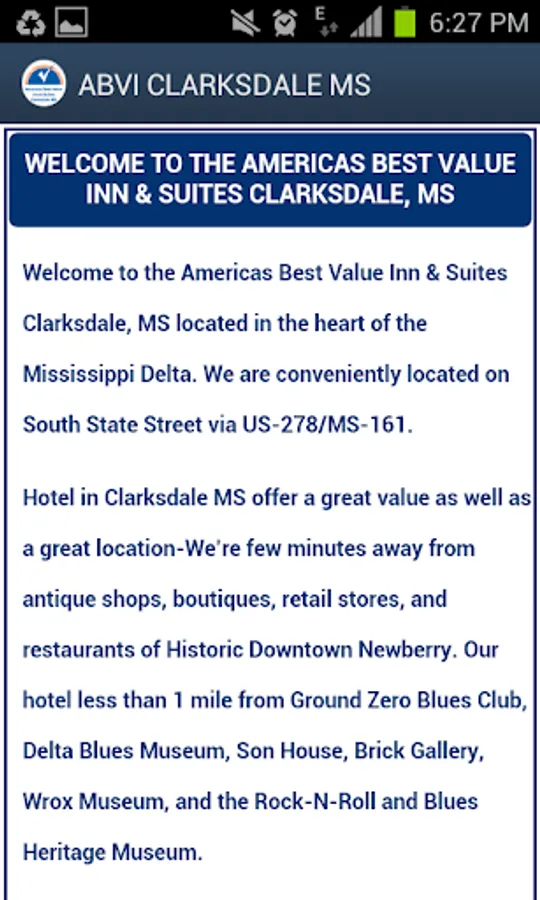For the best value in Clarksdale, MS hotels, get to know the Americas Best Value Inn & Suites Clarksdale, MS, a hotel that wants your business. You can connect with this property with greater ease than ever before when you use this hotel app from BingoTravel App. This single property app makes it more convenient that you’ve ever imagined to reach this clean, comfortable hotel anytime. Check out hotel features and amenities and take a look at great photos of the property too. Book quickly and easily too. It’s always here for you, and all you have to do is download the app for full functionality.