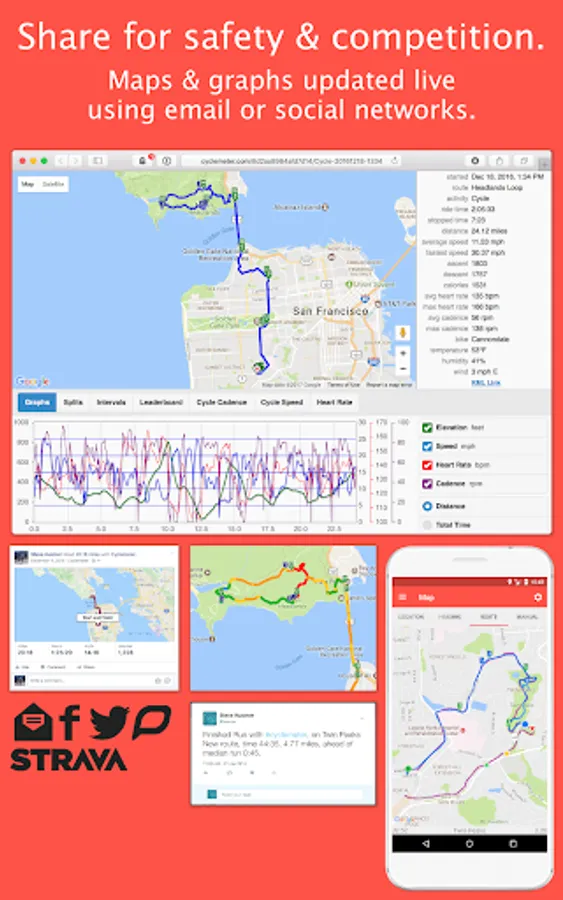 • Share by email, Twitter, Facebook, Strava, MyFitnessPal or dailymile.