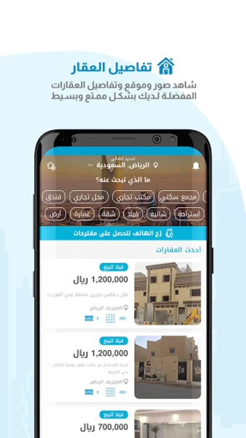 Abwab enables you to search through the map on all properties around you or through lists while using many filtering tools. The app allows you to promote apartments, villas, office space, retail stores, warehouses, hotels, compounds, or any other residential or commercial property.