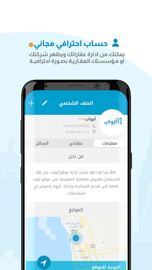 Abwab.com enables you to open a professional account that shows your real estate, office or company information, methods of contacting you, regions and types of real estate that you specialize in distinctively and professionally. You can manage ads through the application or through the website at Abwab.com