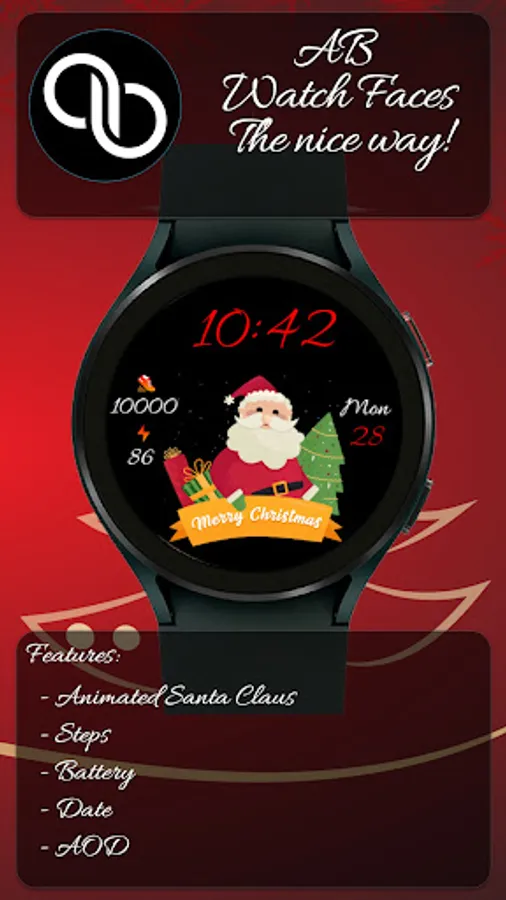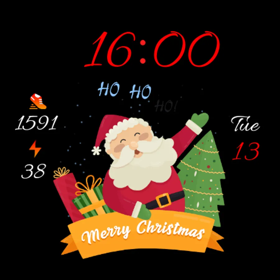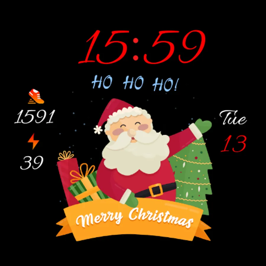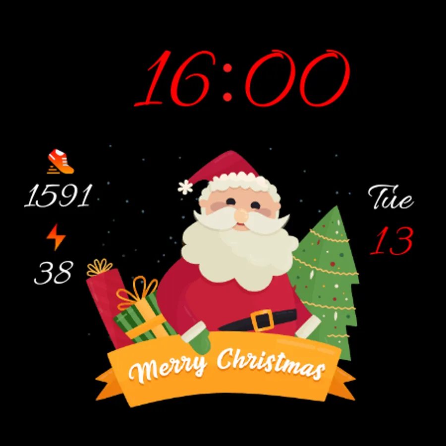 Celebrate the holiday season with our Christmas Santa Claus watch face. Keep track of your steps, battery level, and date, and enjoy a festive animation of Santa Claus on your watch face. Make this Christmas your most joyful and organized yet with our watch face.