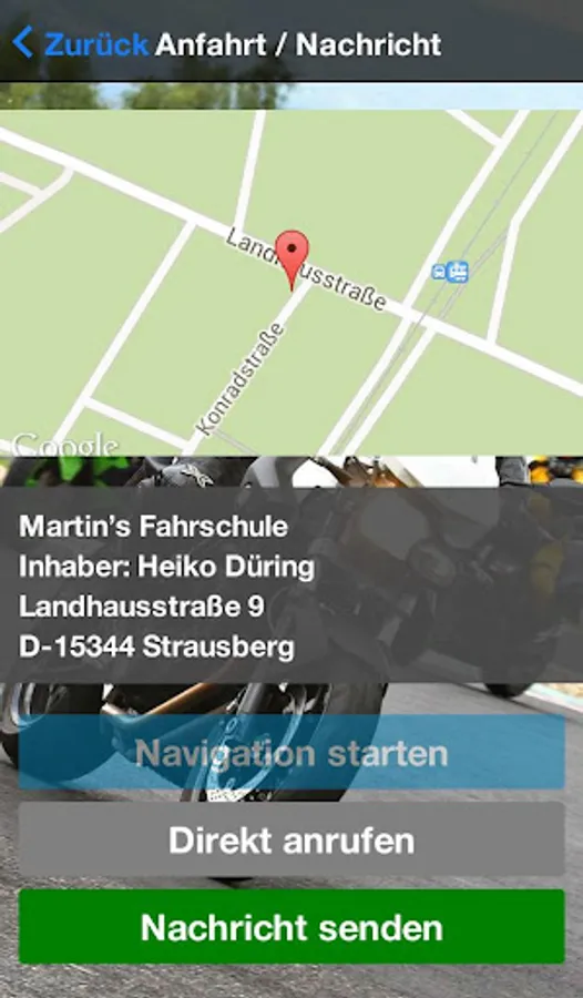 With the built-in card including directions to navigate easily through the parking lot directly in front of Martin's Driving School in Strausberg. During the motorcycle season we inform date on the popular motorcycle safety training, exits or warm ups in Brandenburg and Berlin. If you enable the built-in push function, you always know immediately if there is any news.