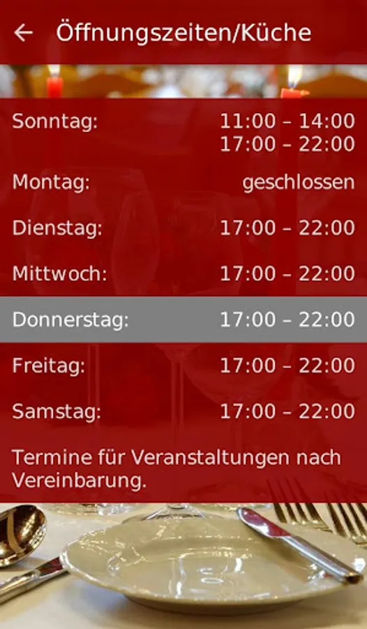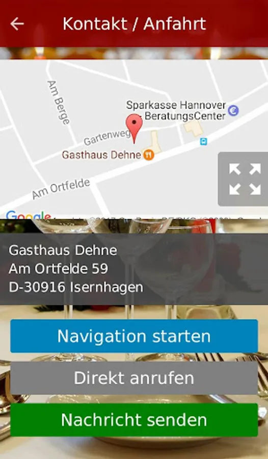 Online table reservations you make a click on the app and a phone button it makes a telephone call. The app also provides information on the current opening times.