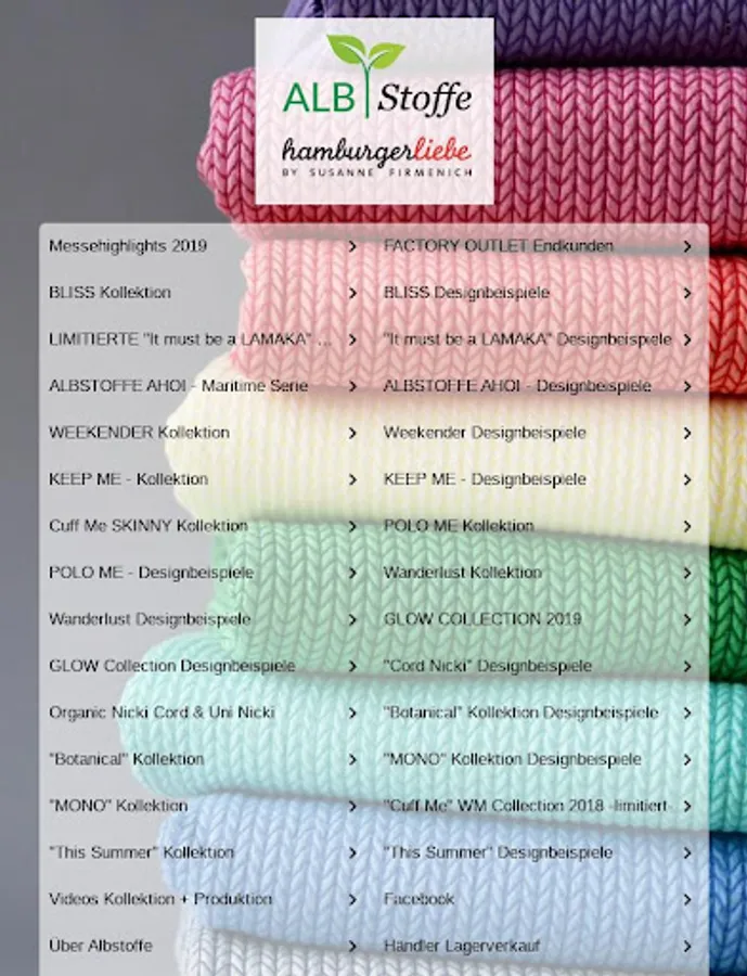 In the brand new Albstoffe app you will receive exclusive design examples of current collections of Hamburger Liebe and Albstoffe. Even videos from the production, as well as the new collection in high-resolution images you get in advance only in the app.