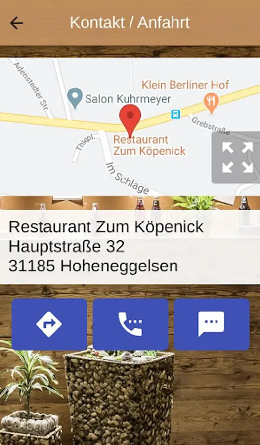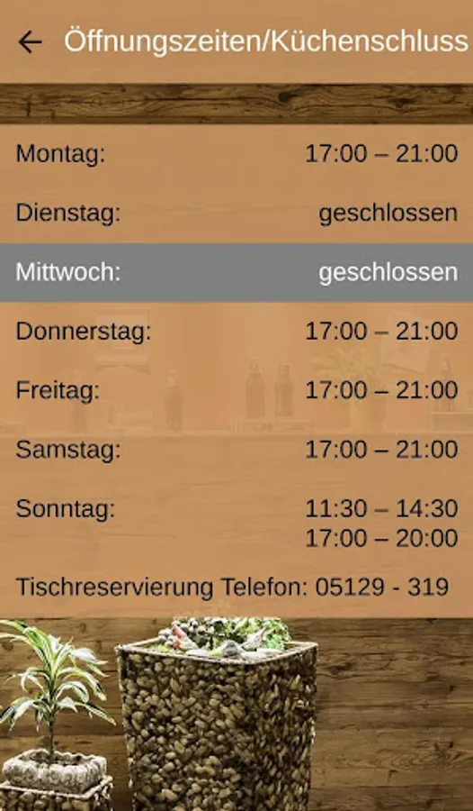Make table reservations with a click in the app. Via a telephone button, she establishes a telephone connection. The app also provides information about the current opening times.