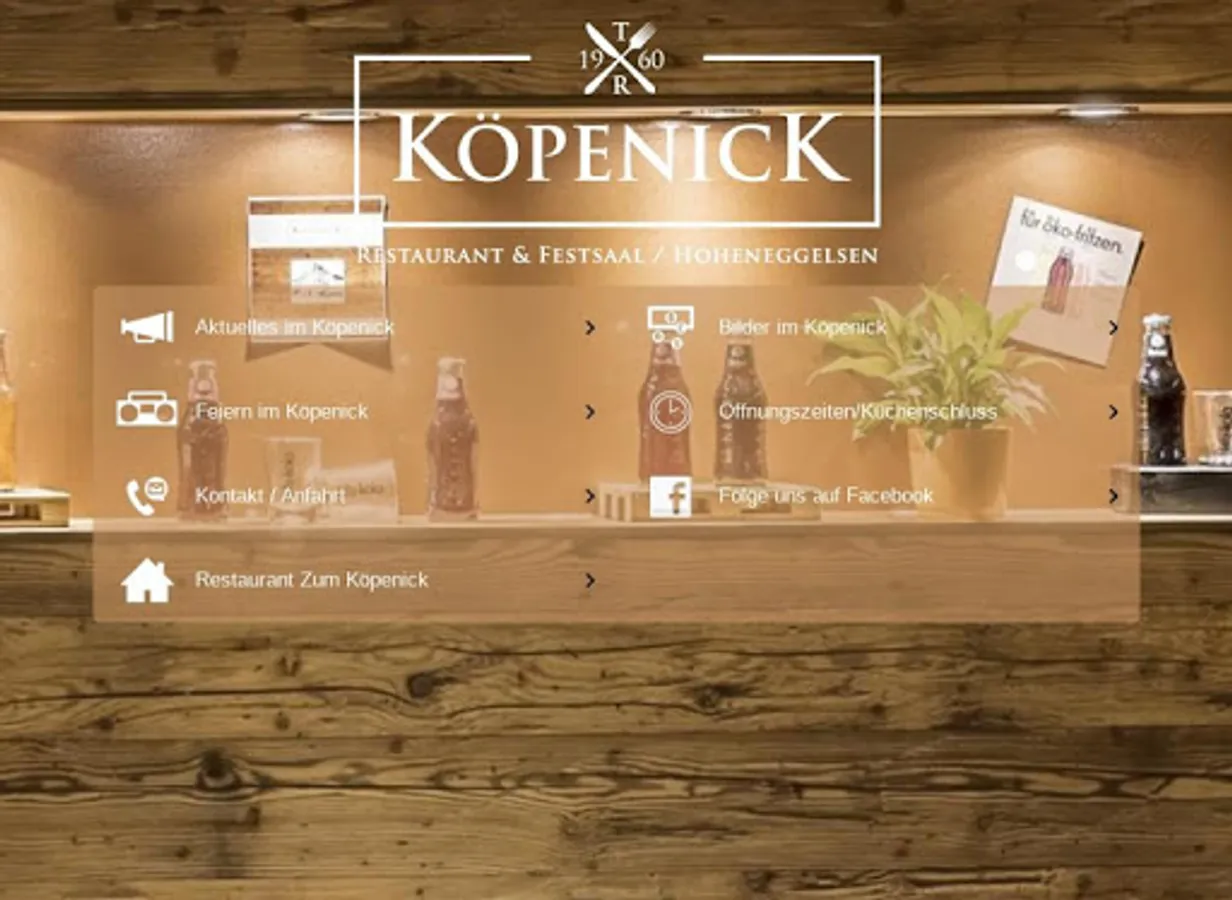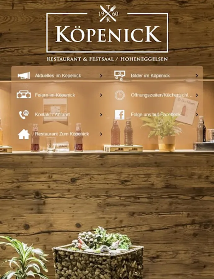 With the free Restaurant Zum Köpenick app, you can easily implement your gastronomic wishes in our various rooms. You are always informed about the current and mostly seasonal offers. No matter whether meat, pasta, fish or vegetables, salads, brunch buffets and delicious soups - all the way to delicious desserts, every meal wish can be fulfilled. Follow the changing offers, such as the popular weekly offers in the Zum Köpenick restaurant. Find out in which rooms you want to organize your celebration, anniversary, wedding or birthday. Arrange a consultation with the telephone button.