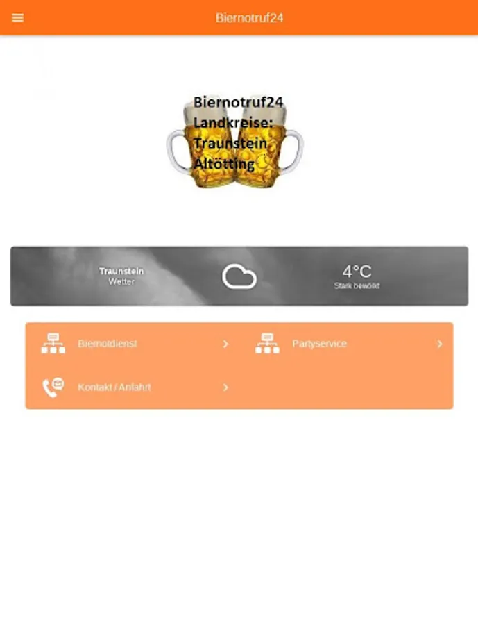 The Beernotruf24 provides you with beer and other drinks on weekends and at night. You can also use our service with draft beer, beer cooling and music systems for your party via our app. All this at reasonable prices and delivered free of charge. We are on the road for you in the district of Traunstein, Altötting and Mühldorf in Bavaria.