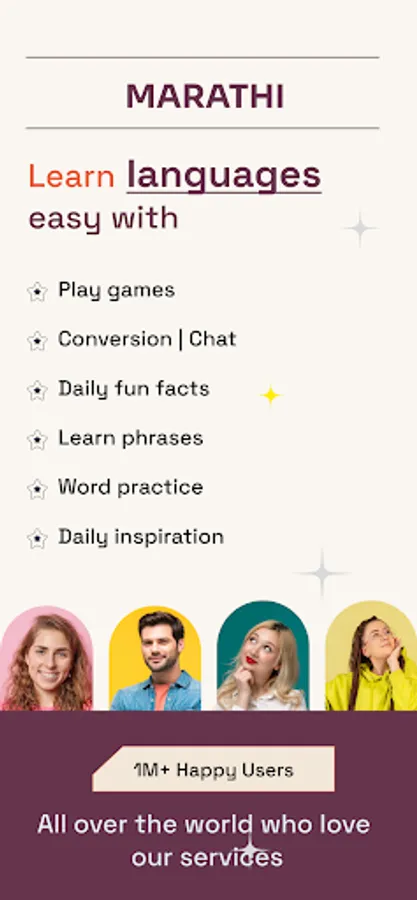 Learn Marathi for only a few minutes a day! Fun and stress-free way with the Marathi Translator app. Enjoy learning using vocabulary, phrases, games, chat, new words, Daily words, and many more features.