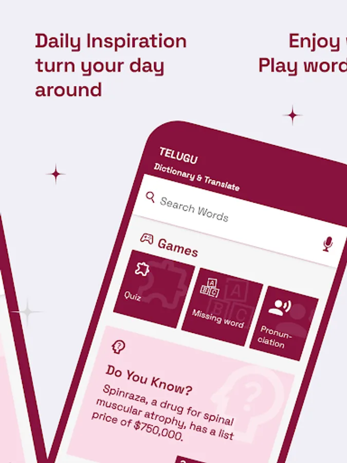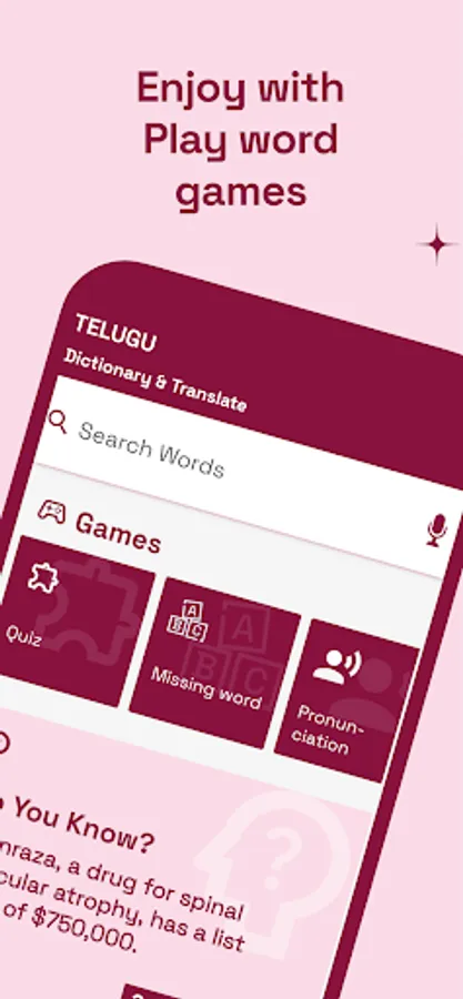 Every day you'll receive word of the day to enhance your vocabulary to improve your English means Easy to Learn English. You can learn the English language very quickly and easily from your Telugu language this utility application (Telugu Dictionary). The dictionary contains words with meaning, definition, usage example and antonyms. This Application ( English to Telugu Dictionary) Have daily Speaking common sentences to improve your spoken English too. Telugu dictionary always notifies to learn daily new words & sentences it's making some different from other students. This application ( Telugu Dictionary ) Have OCR feature which can easily identify Text from Images.