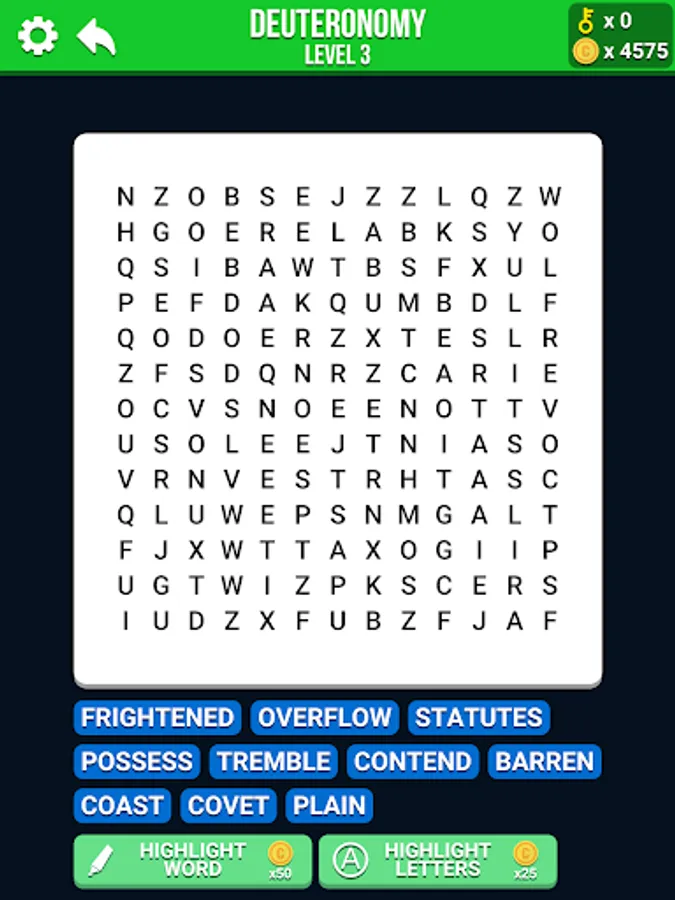 Seems too easy? Don’t worry, we have hundreds of challenging word puzzle levels, words from each book of the Holy Bible. With each level more difficult and larger than the previous, how many words can you find? Find all the hidden Bible words to improve your English vocabulary and your interest in Bible!