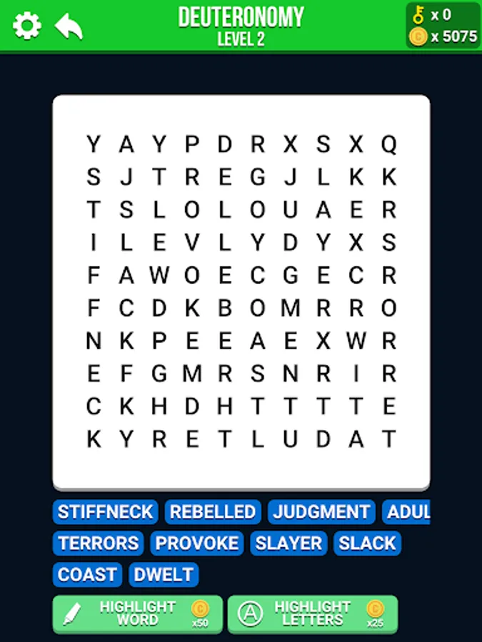 Bible App Game- Bible Word Search is a classic crossword puzzle with words and levels taken from all books of the HOLY BIBLE. Find new bible words daily with this Bible App. Play the traditional word search game, made up from Holy Bible Words.