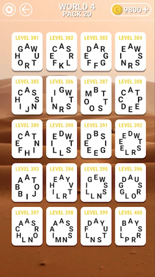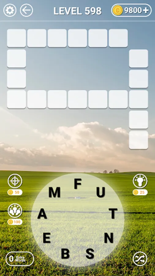 Playing this word puzzle game is easy! Simply slide your finger over the letters on the wheel to form words. Find all the right words to complete the level! Collect additional words to earn bonus coins! This game comes with 1000 levels and 10 unique level themes, so you never feel bored!