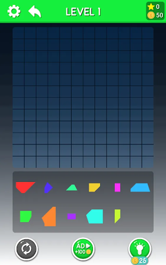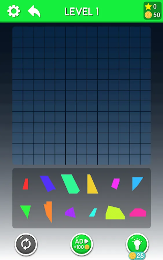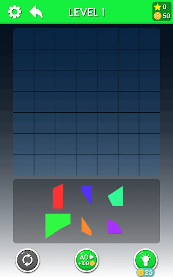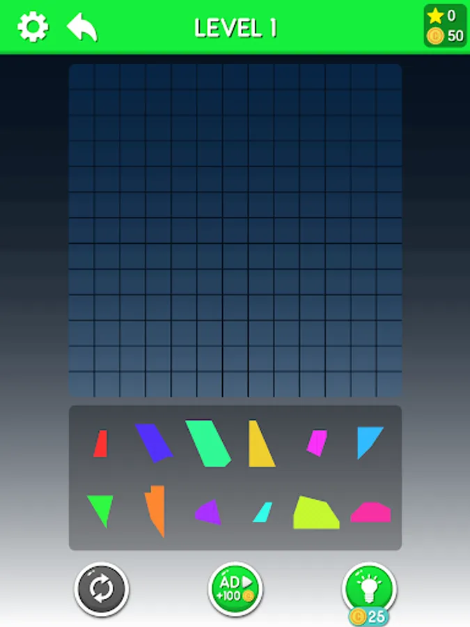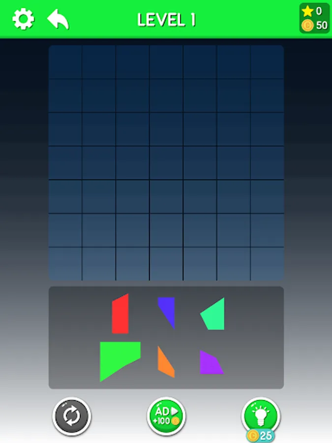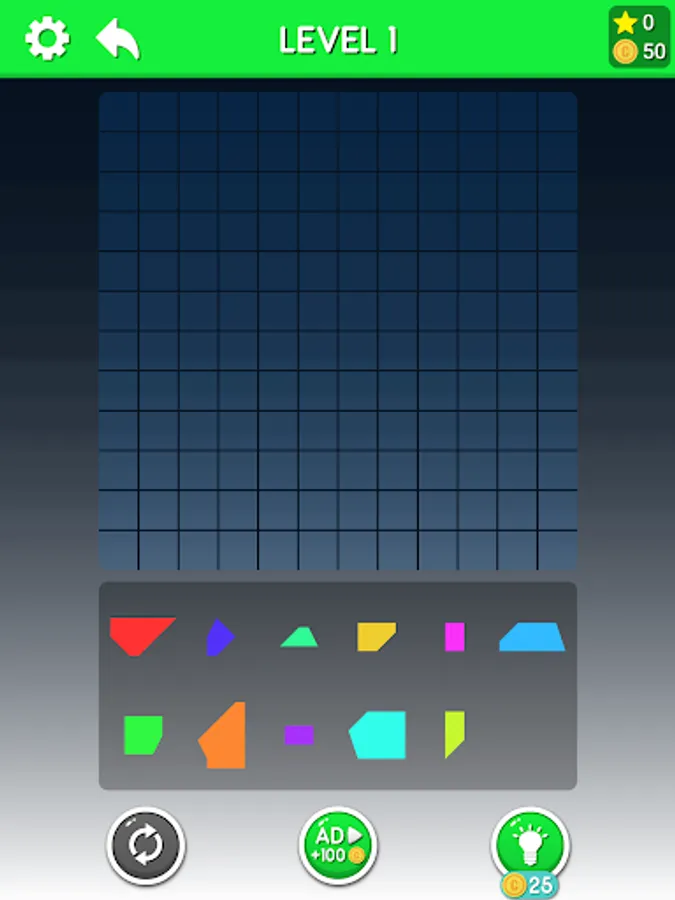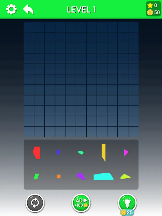 Tap and swipe to drag random colorful shapes on top the board and place them without overlapping with other shapes. After selecting a shape, you will need to rotate and move the elements to the field to find their correct position. Complete challenging Tangram Puzzle Levels to win stars and coin bonus, which would help you to unlock levels! Use free hints to get out of tricky or difficult Tangram Block Puzzles. . Once you feel you have become a master at this game, you can also try to perform as many puzzles as possible in a limited amount of time. Hours of Fun ahead of you.