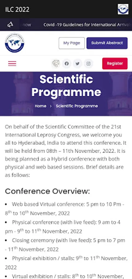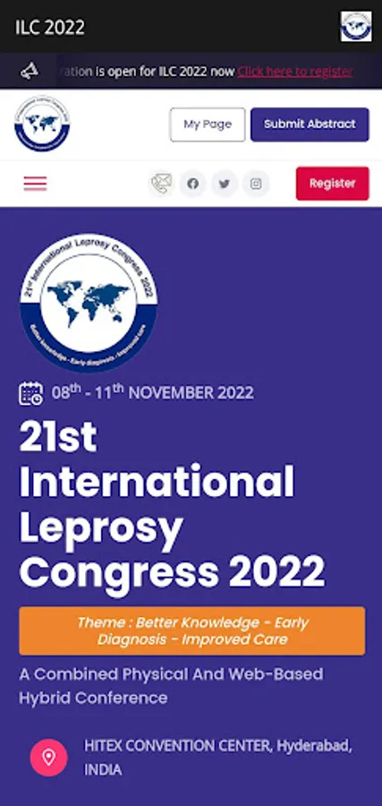 The 21st ILC will be held in India from 8th to 11th November 2022 at the prestigious HITEX Exhibition and Convention Center & HICC- Novotel, Hyderabad. The Congress will be held in a Hybrid Model with both physical and web-based sessions which allows more than 130 hours of scientific sessions with the ability to accommodate over 2,500 physical delegates, and unlimited virtual participation. It plans to focus on the major breakthroughs and advances in various aspects of leprosy such as diagnostics, therapy, epidemiology, and their impact on clinical practice and management of leprosy.