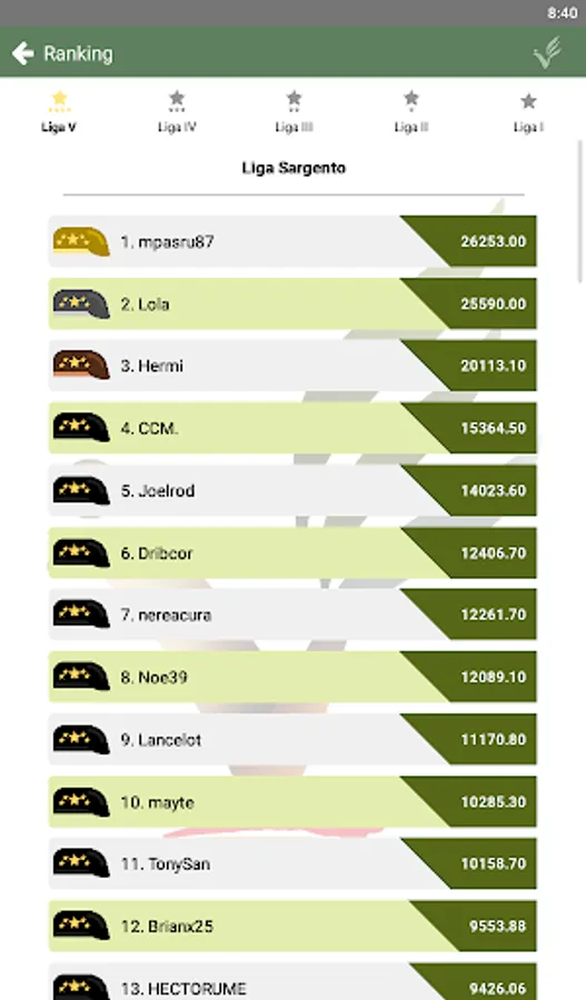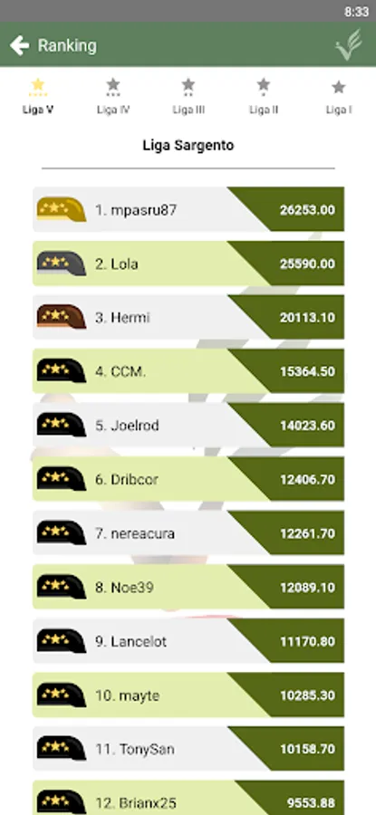 • Competition system based on Rankings and Leagues, depending on the score obtained in the questionnaires. Will you be able to reach the V Sergeant League?