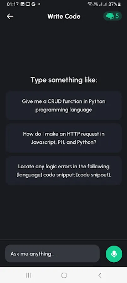 Our AI Bot is equipped with state-of-the-art algorithms that can instantly provide you with accurate and reliable answers to your queries. Need help with coding? Simply ask our Chatbot for any programming code, and it will provide you with the most relevant and efficient solution. No more wasting time searching through countless resources or struggling to find the right code snippet – our Chatbot has got you covered.