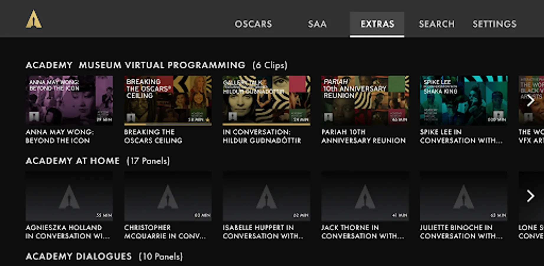 The Academy Screening Room extends streaming features provided for Academy members on Android TV . This application will primarily be used to stream titles that have been submitted for awards consideration and is available to Academy Members only.