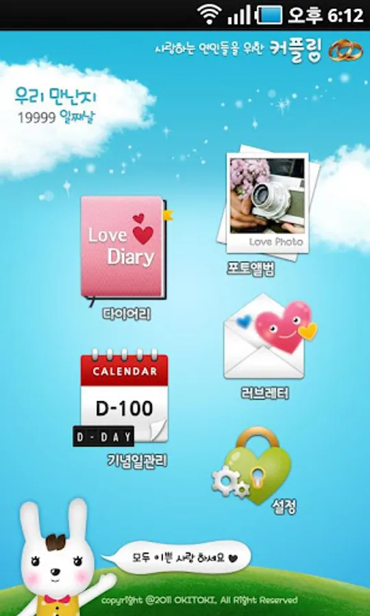 It is a smartphone application that provides a variety of functions for couples, such as managing diaries, album photos, anniversaries, etc. for loved ones, making direct calls to lovers, and sending messages.