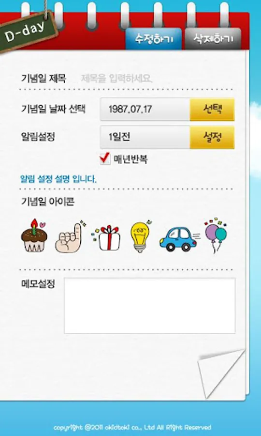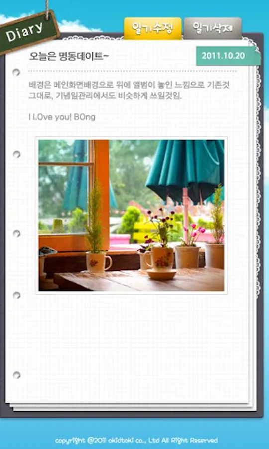 -Couple diary function that records precious memories of couples with couple pictures and pretty icons