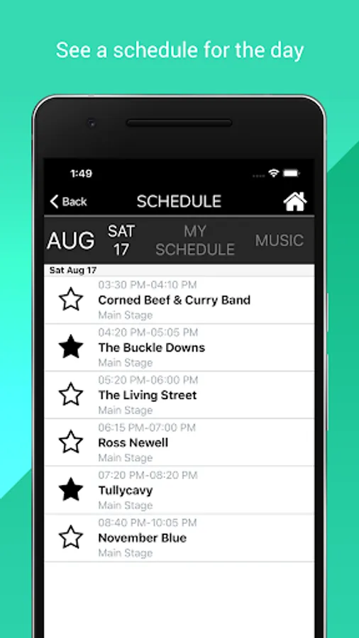 The live, up-to-date schedule enables you to see what performances are happening, mark your favorites, make your own schedule, and be notified when they start! View vendors and sponsors, and find your way there with the map.