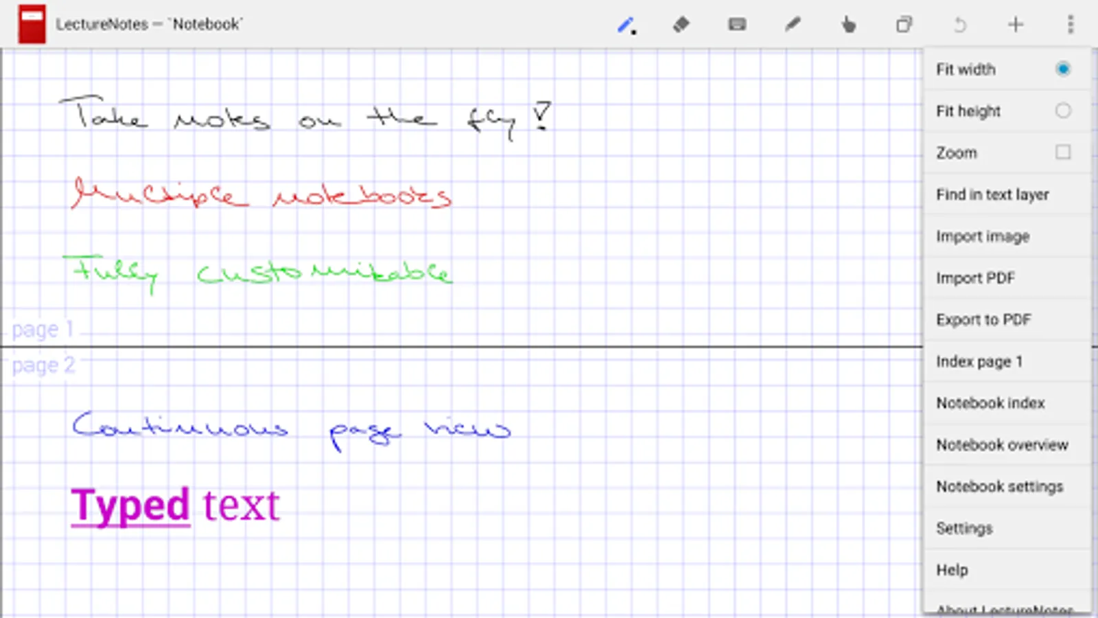 LectureNotes is an Android app for note-taking by handwriting on the screen, in particular with a stylus.