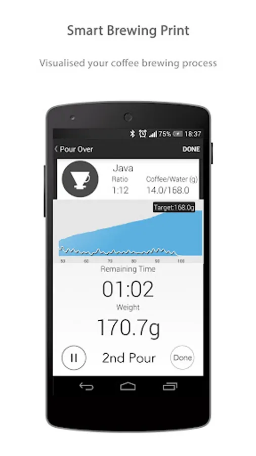 ⇾ Brewing Print Sharing: Evaluate and visualize your pour over coffee brewing process and share your brewing print with your friends.